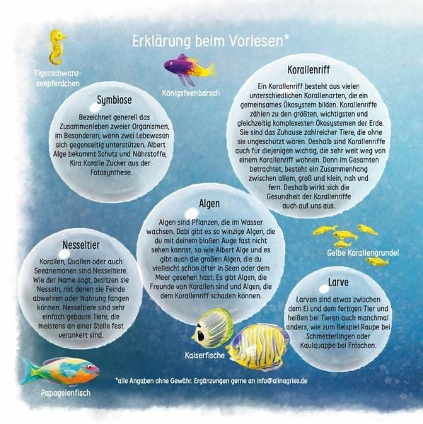 Das liebevoll illustrierte Bilderbuch zeigt die Schönheit des Ozeans und wie wichtig Korallenriffe für das Meeresleben sind. Es erklärt komplexe Themen wie Korallenbleiche, Umweltschutz, Müll im Meer und die Auswirkungen des Klimawandels kindgerecht, verpackt in einer unterhaltsamen Tiergeschichte.