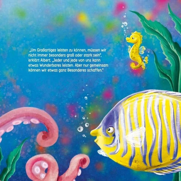 Denn nur als Team können Kira und Albert wieder Farbe ins Riff bringen. „Jeder von uns kann etwas Wunderbares tun. Aber nur gemeinsam können wir etwas ganz Besonderes schaffen“!