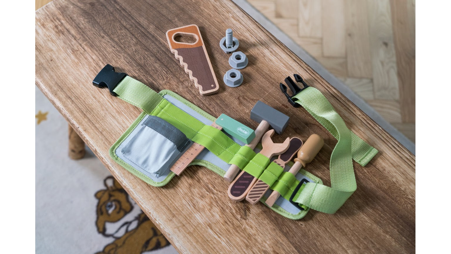 Der Werkzeugsgürtel kommt in einer schönen Geschenkbox und enthält alle Werkzeuge, die ein kleiner Handwerker benötigt. Mit seinen 11 verschiedenen Teilen bietet das Set reichlich Möglichkeiten zum Erkunden, Experimentieren und Rollenspielen. Der limegrüne Gürtel ist so gestaltet, dass er leicht verstellbar ist und von Kindern ab 3 Jahren getragen werden kann.