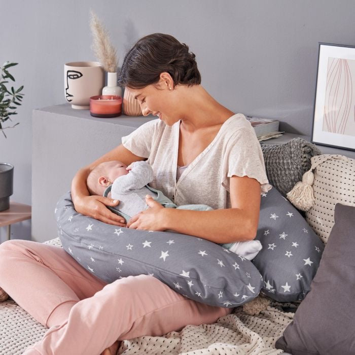 Der hohe Anteil an Bambus (57 %) und Bio-Baumwolle (38 %) macht diesen Stoff zu einem der nachhaltigsten der Theraline-Kollektion. Abgerundet mit 5 % Elasthan entsteht ein herrlich feines und kühles Stoffgefühl. Der Bambusviskose-Stoff ist feuchtigkeitsregulierend und atmungsaktiv und sorgt für ein angenehmes Hautklima. Wie kein anderer schmiegt sich dieser Stoff sanft an und sorgt dafür, dass sich das Stillkissen flexibel an die Bedürfnisse von Mama und Baby anpasst.