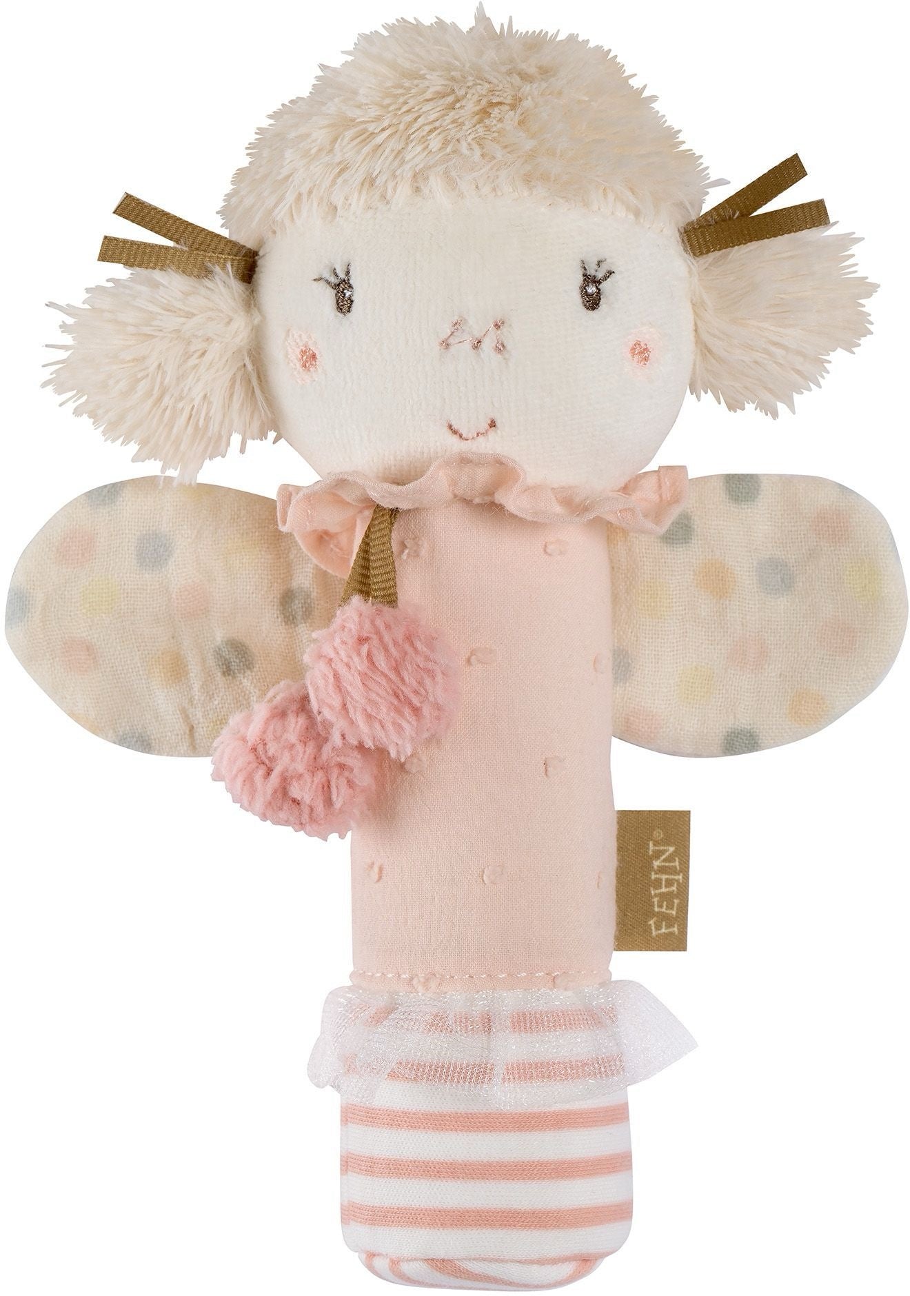 Der Stabgreifer Fee aus der feehnLAND Kollektion lässt sich greifen, fühlen, rasseln und quietschen und fördert damit das Interesse des Babys und lädt zum Entdecken und Forschen ein. Die „Glow-in-the-dark“ Bestickung leuchtet im Dunkeln. Die Stabrasselmit Quietsche fördert spielend den Hör-, Greif- und Tastsinn sowie die Feinmotorik des Babys und eignet sich somit ideal als Geschenk zur Geburt, Taufe oder zum Geburtstag. Kleine Entdeckerinnen werden die niedliche Fee schnell in ihr Herz schließen und sie als treuen Begleiter überall mit hinnehmen – ob zuhause, unterwegs, in der Babyschale oder im Wagen!