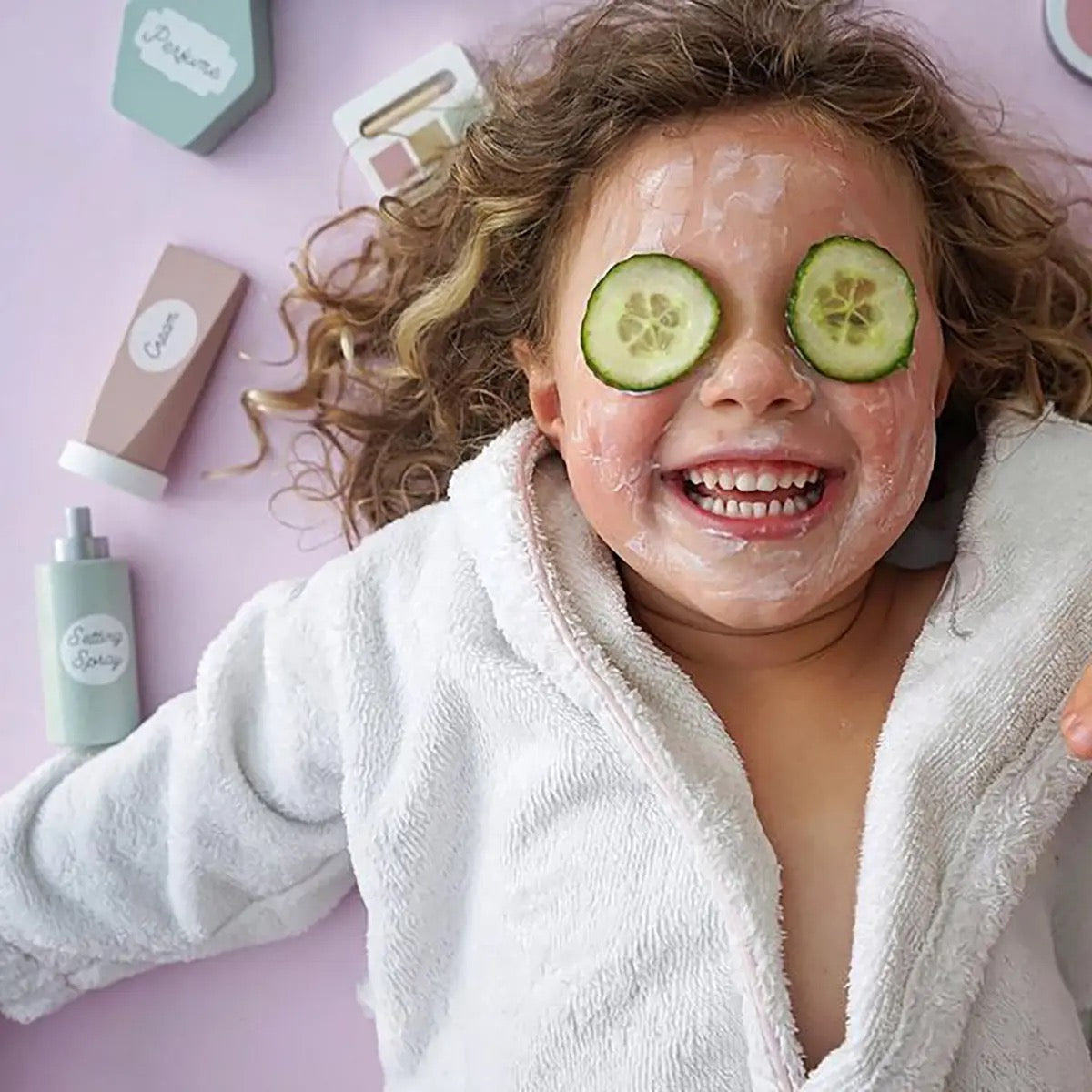 Der Jabadabado Kinder-Beauty Salon ist ein Traum für alle kleinen Beauty-Fans. Eröffne deinen eigenen luxuriösen Beauty Salon und verwöhne deine Kunden mit Gesichtsbehandlungen und einem Make-up für die Party. Zuerst gibt es für entspannte Augen Gurkenscheiben und eine Gesichtscreme, bevor du mit dem Make-up beginnst. Dann trägst du eine Foundation und Rouge auf, dazu den passenden Lippenstift und Lidschatten. Zum Abschluss für die Augen noch Mascara und Kajal und der Look ist perfekt.