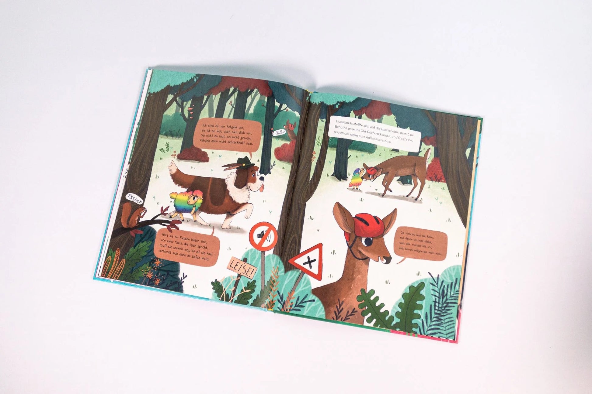 Das kleine Lamm Lammanda wird von den anderen Schafen ausgelacht, weil es regenbogenbunt ist und ihm manchmal ein echter Regenbogenpups entwischt, wenn es sich ganz doll aufregt. Zum Glück weiß der Hütehund Bernhard Diener Rat: Er stellt Lammanda seine außergewöhnlichen Freunde vor. Beim Treffen mit einem veganen Hai, einem Fisch, der nicht schwimmen kann und vielen anderen Tieren merkt Lammanda lammsam , was wirklich wichtig ist – und dass wir alle besonders sind.