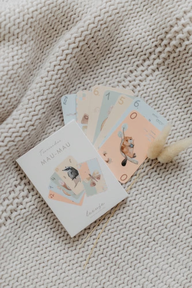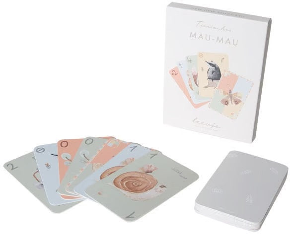 Erlebe mit dem tierischen MAU-MAU Kartenspiel spannende Spielrunden und tauche in die liebevoll illustrierte Welt von leevje ein! Dieses Spiel ist perfekt für Kinder ab 4 Jahren geeignet und bietet mit 56 handgezeichneten Karten voller bunter Tierillustrationen großen Spaß für Groß und Klein.