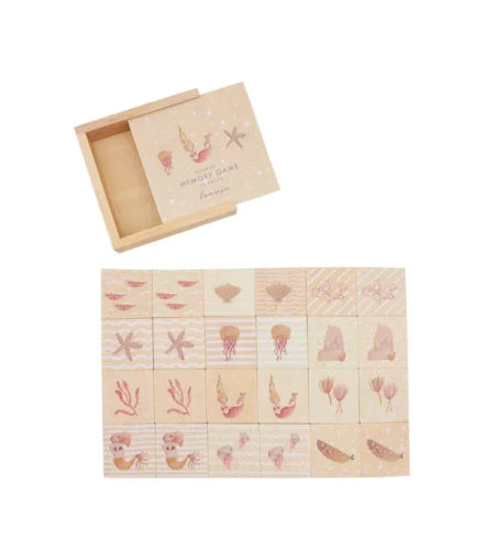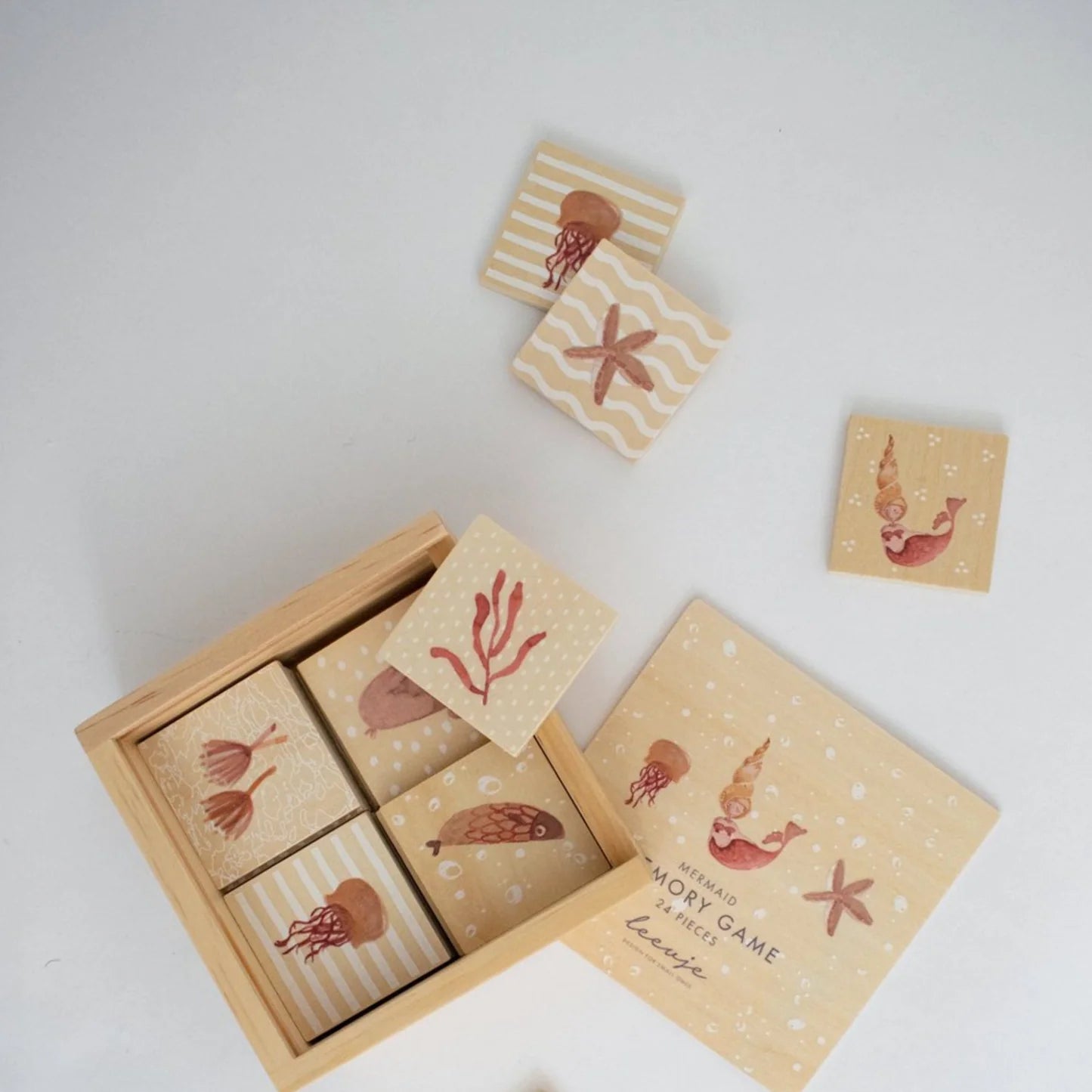 Die Karten sind aus nachhaltigem Holz und geschmückt von Meerjungfrauen, Fisch, Seestern, Muscheln und vielen weiteren Meeresbewohnern. Perfekt für alle Kids, die die Unterwasserwelt lieben.