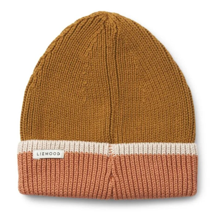 EZRA BAUMWOLL-RIPPSTRICKMÜTZEDARK ROSE / SANDY / GOLDEN CARAMEL