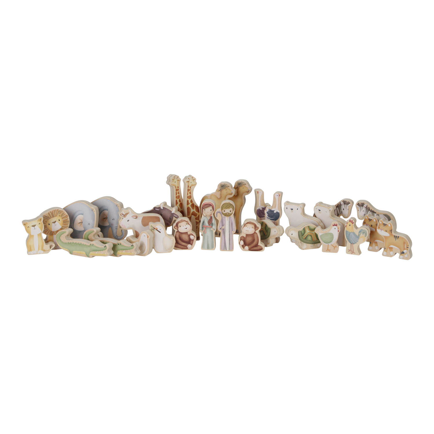 - Paketinhalt | 1 Arche, 1 Noah, 1 Frau, 2 Löwen, 2 Elefanten, 2 Zebras, 2 Affen, 2 Tauben, 2 Krokodile, 2 Schildkröten, 2 Giraffen, 2 Straußvögel, 2 Kühe, 1 Huhn und einen Hahn.