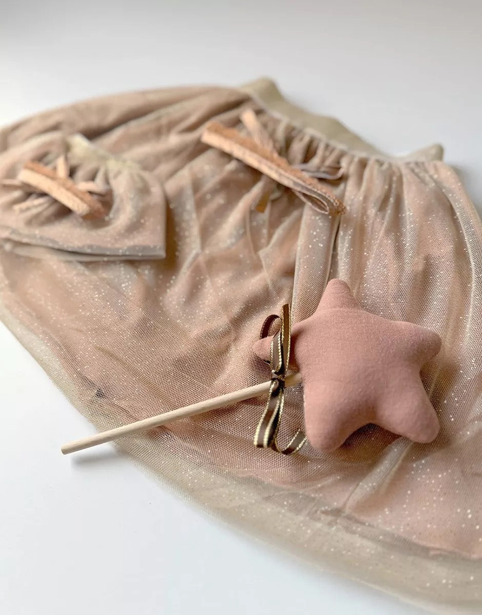 Das Set ist für deine Puppe und für Eure Kids. Enthält zweimal den Rock, 2x das Haarband und einen Zauberstab.