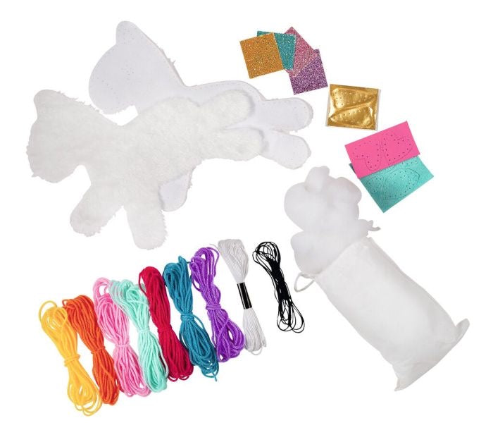 Zum Spielen, Kuscheln oder als zauberhafte Deko: Mit diesem Bastelspaß-Set lässt sich kinderleicht ein Plüschtier nähen! Mit Hilfe der bereits zugeschnittenen Stoffe, der Füllwatte und dem bunten Garn können kleine Bastelfans das kuschelige Einhorn mit Glitzerdetails selber fertigstellen. Die leicht verständliche und bebilderte Anleitung erklärt dabei Schritt für Schritt, was gemacht werden muss. Ist das Plüscheinhorn fertig, wird es zum niedlichen Begleiter beim Spielen oder der Zu-Bett-Geh-Zeit. Dank der schönen Box im farbenfrohen Design lässt sich das Bastelset auch perfekt verschenken.