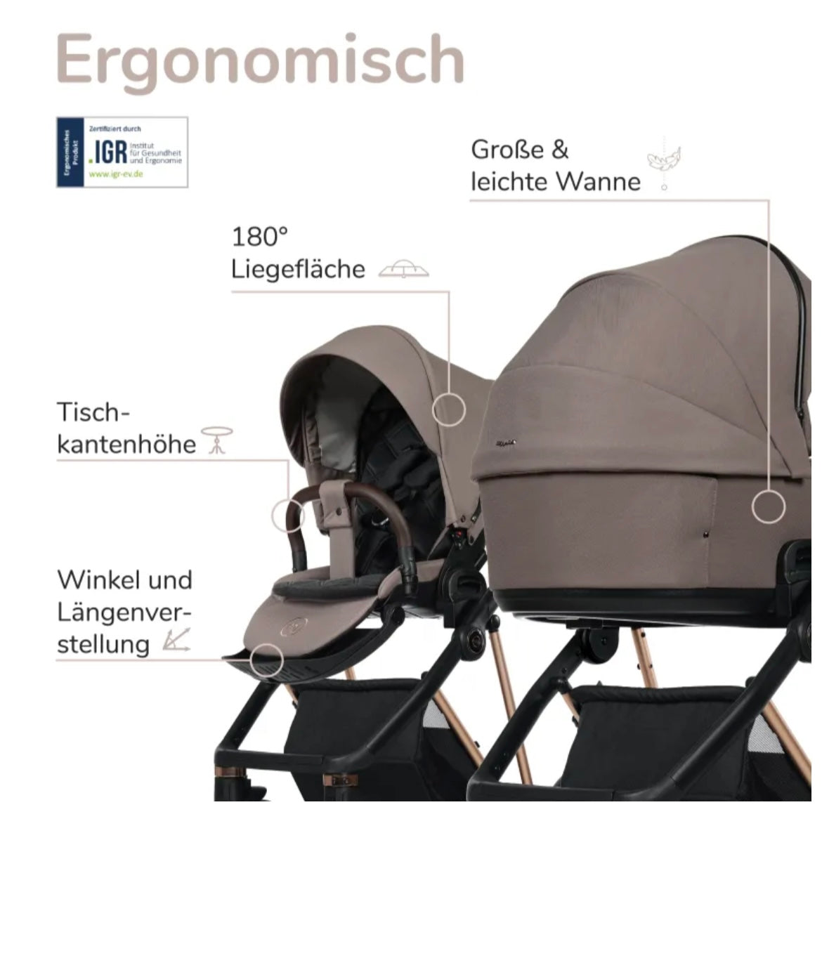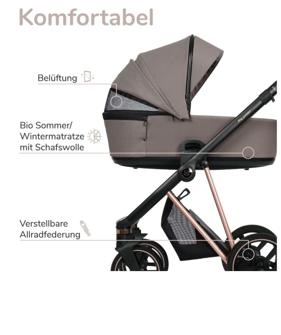 - Hochwertige Matratzen: AirCozy-Matratze für die Babywanne und waschbare CloudBamboo-Matratze für den Sportsitz. Komfort im Winter und Sommer.