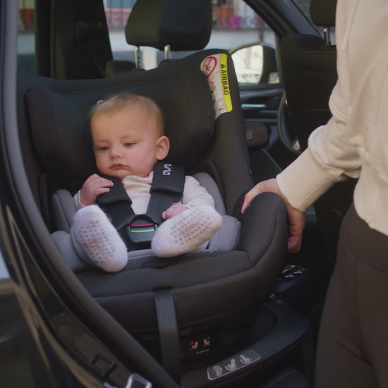 - Display mit Farbindikatoren zeigt korrekte Installation des Sitzes an – so weißt du jederzeit, dass dein Kleines sicher unterwegs ist