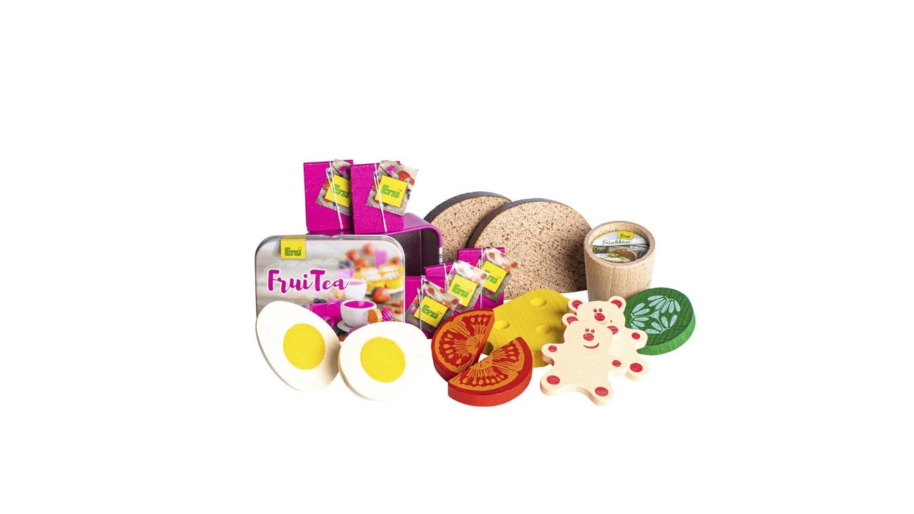 Dieses Holzspielzeug bringt Alltagserfahrungen in den Rollenspielbereich von Kita, Hort oder Grundschule. Mit 16 detailreich gestalteten Holzteilen können Kinder typische Bestandteile eines Abendessens erkunden – vom Brot über Käse und Wurst bis hin zum Früchtetee. So entstehen im freien Spiel kreative Szenen, die sprachliches und soziales Lernen fördern und das Bewusstsein für gesunde Ernährung schärfen.