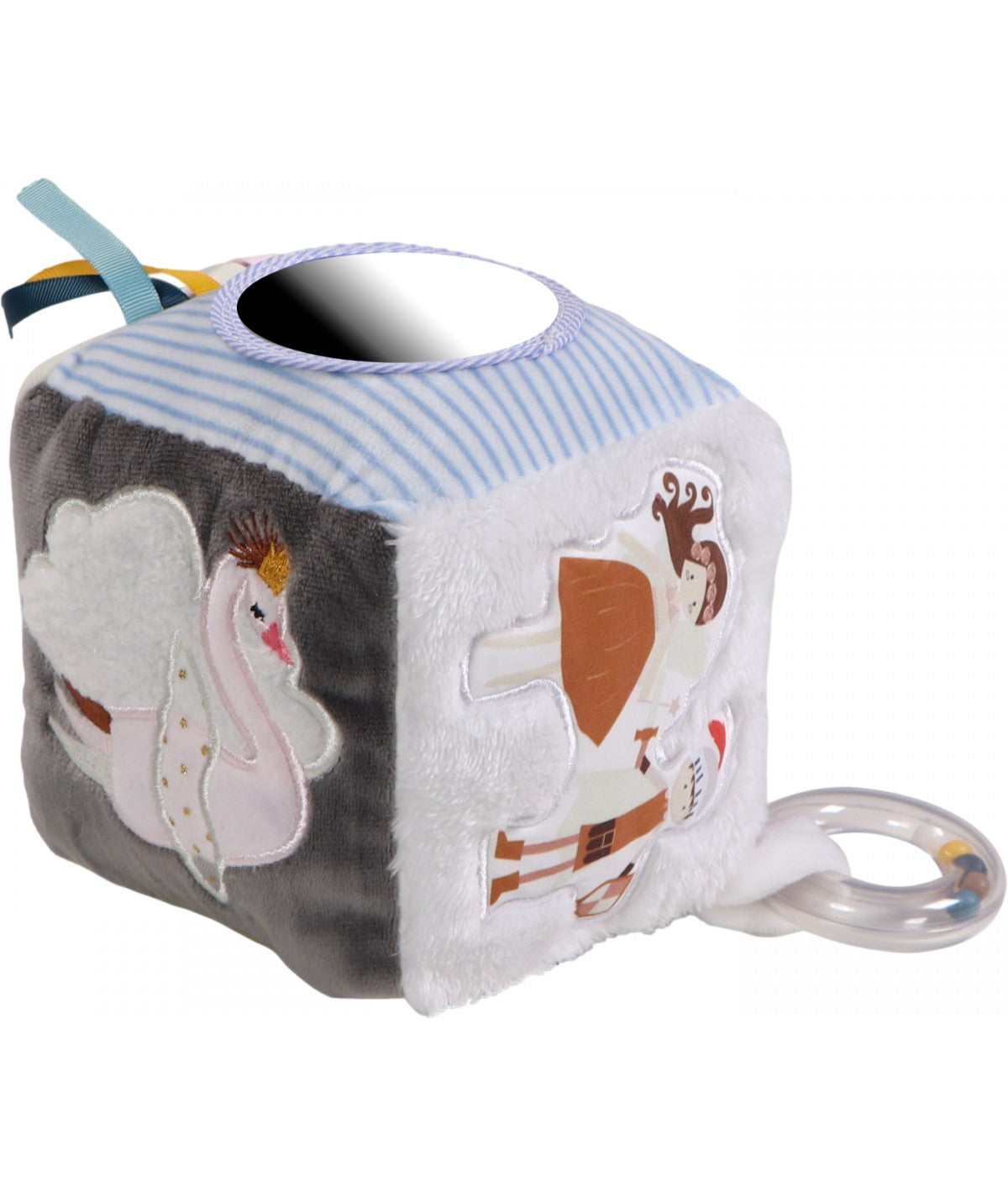 Dieser Würfel hat 6 Seiten voller Aktivitäten! Der Würfel ist ganz im Fantasy-Thema, auf jeder Seite gibt es einen anderen Gegenstand zu entdecken. Zum Beispiel enthält der Würfel einen Spiegel, Etiketten, eine Rassel und die Flügel des Drachens Diego können gegriffen werden. Die verschiedenen Strukturen und Stoffe regen das Kind zum Entdecken an.