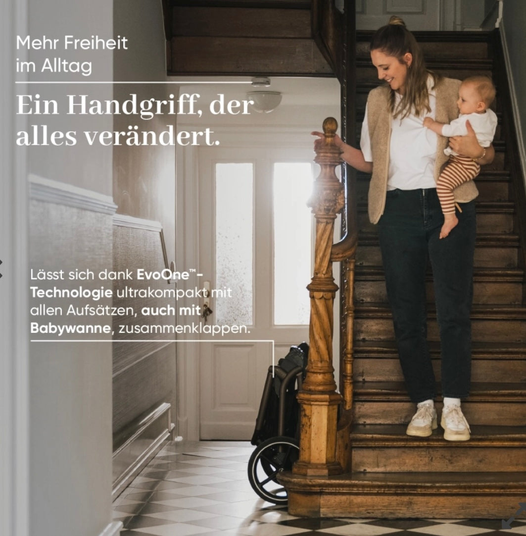 ✓ Kompakt faltbar, sogar mit Babywanne – dank patentierter EvoOne™ Technologie